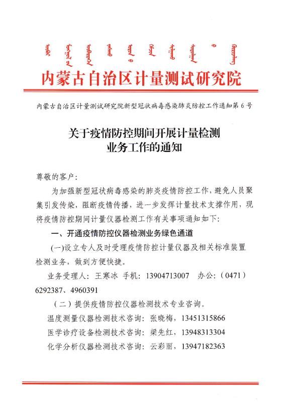 关于疫情防控期间开展计量检测业务工作的通知